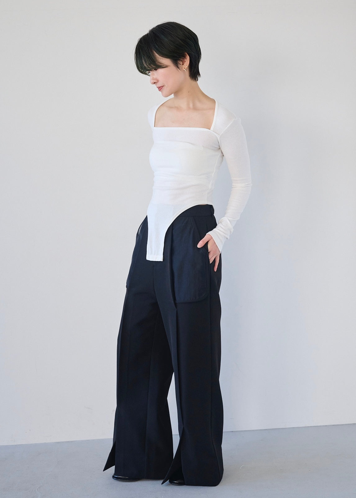 シアーコンビスリットパンツ_BLACK